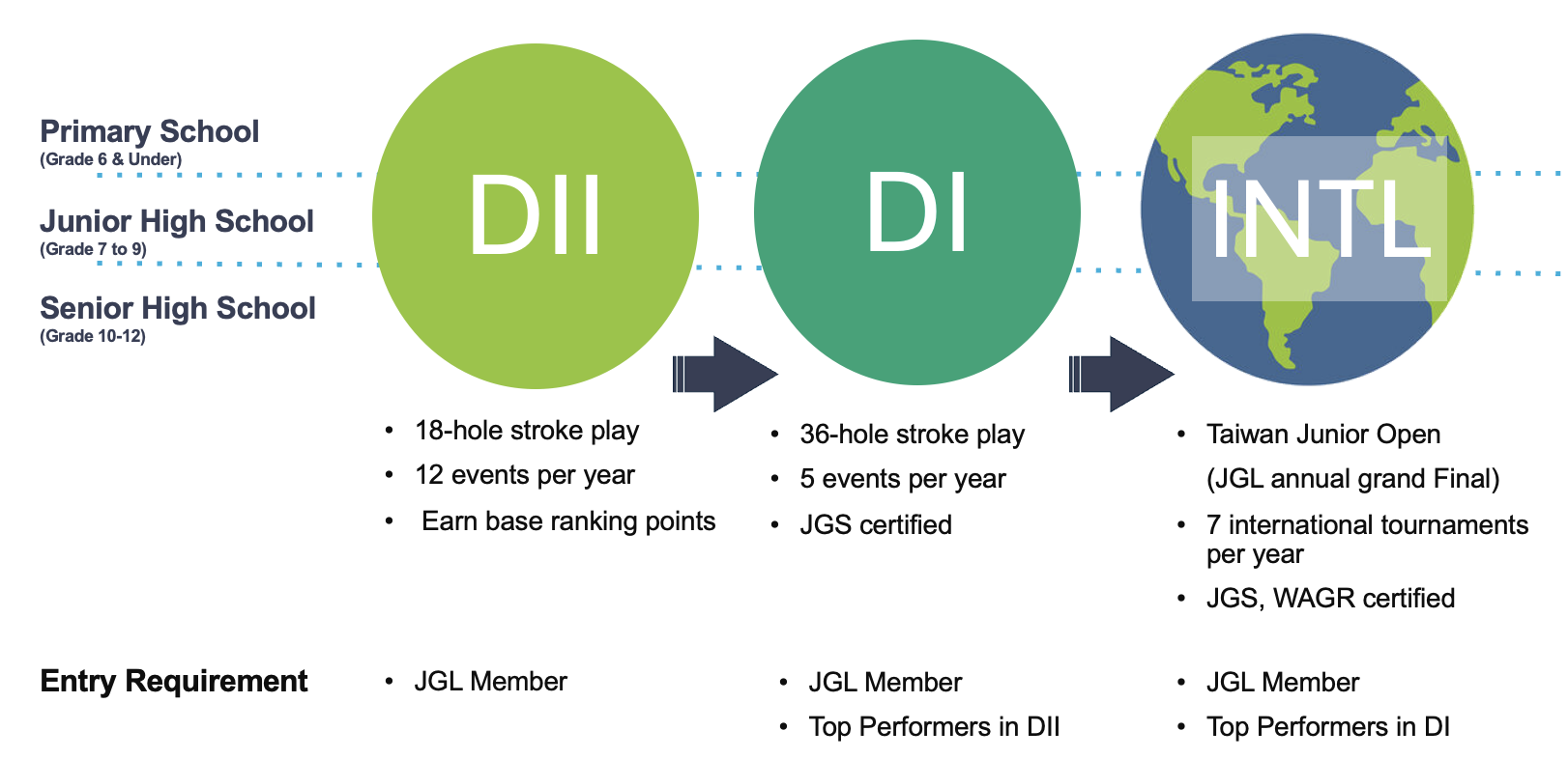 The Junior Golf League (JGL) is a platform designed for young golfers in Taiwan who are passionate about the sport while prioritizing their education in academic achievements.