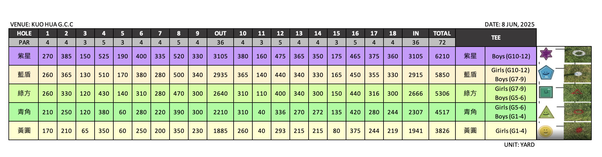 | DII | Boys and Girls, ages 7-18 | 104 | 18 Holes, Stroke Play | TBC |